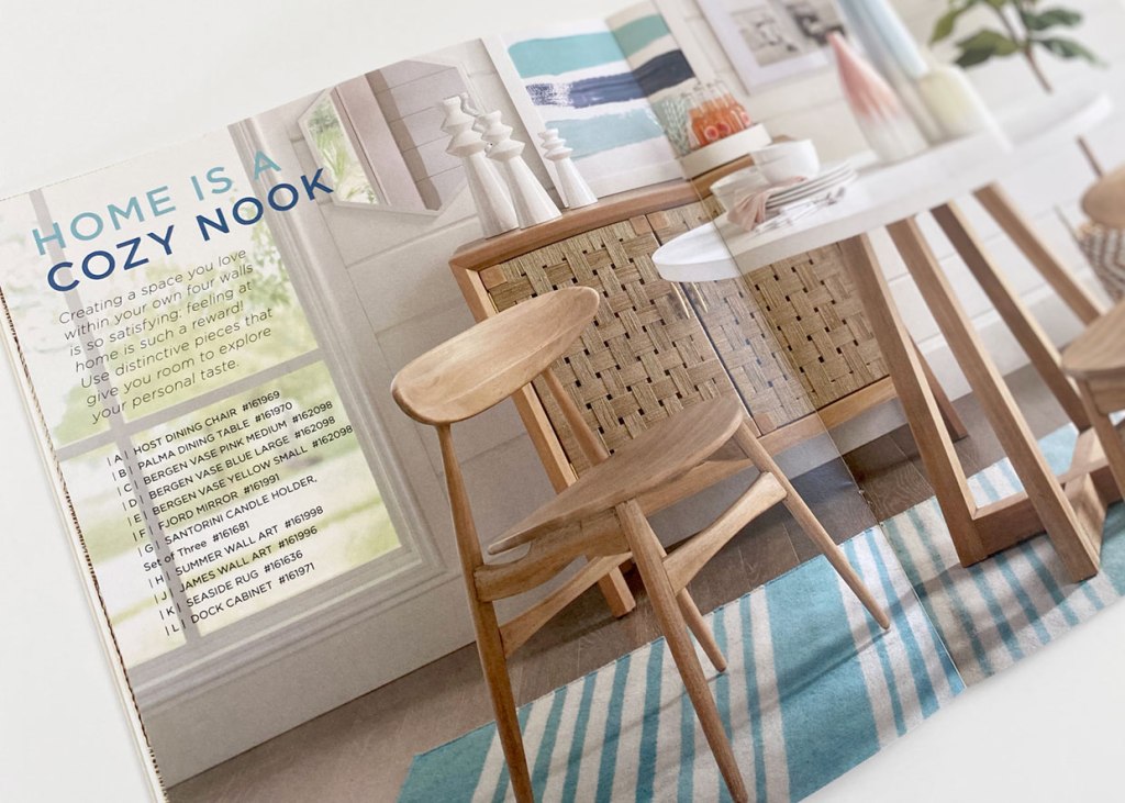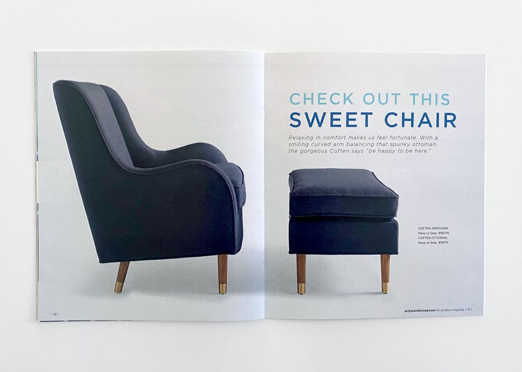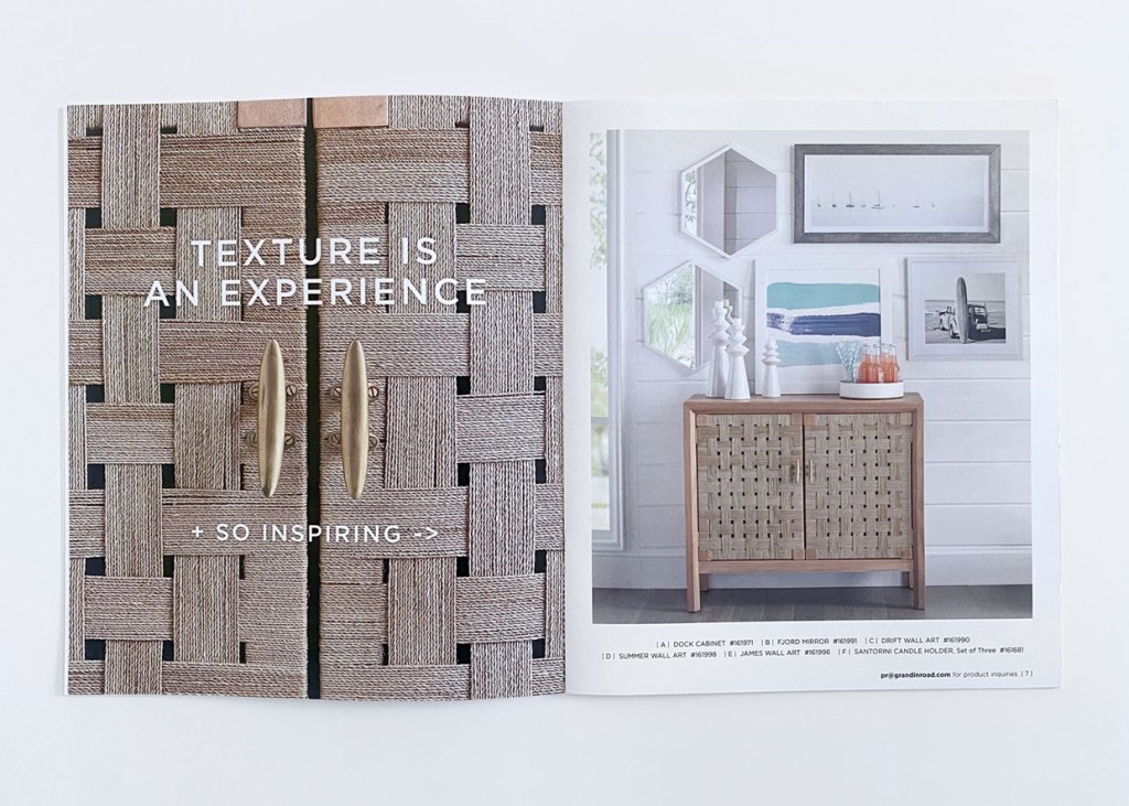 While working as the Production Graphic Designer at Grandin Road, I designed this media lookbook for a collaboration with designer Will Taylor. This lookbook was sent out to media companies, magazines, television networks, and bloggers to get press and exposure for the products. I had the opportunity to do some art direction with the Photography team for this lookbook. The soft focus feature photos shown below are the photos that I art directed. I really liked this product line, so it was a lot of fun finding creative ways to showcase the items.