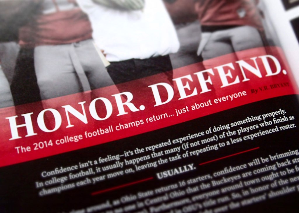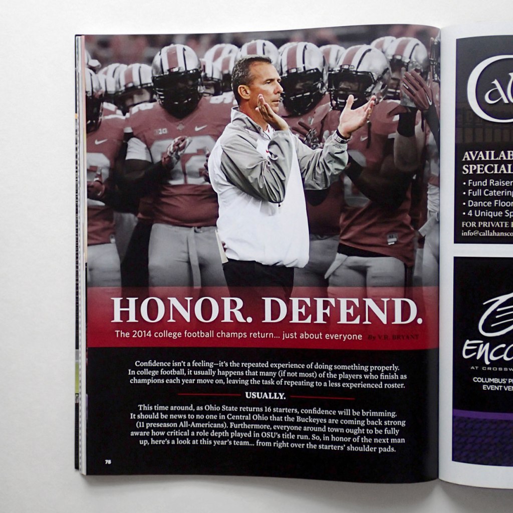 This magazine cover was a collaborative effort with designer/illustrator Alix Ayoub during my time as the Lead Designer of (614) Magazine. Our team had selected some photographs as possible cover images, but the overall look and feel hadn’t been established. One day, I noticed Alix working on a photo illustration with the solid white, grey, and red elements that you see on the cover. As soon as I saw what she was working on, it sparked inspiration. I asked her if I could try adding to what she had started, and so I layered the black high contrast photographic elements over top of her illustration. From there, I added the textured grey background and the typography, and it all came together.