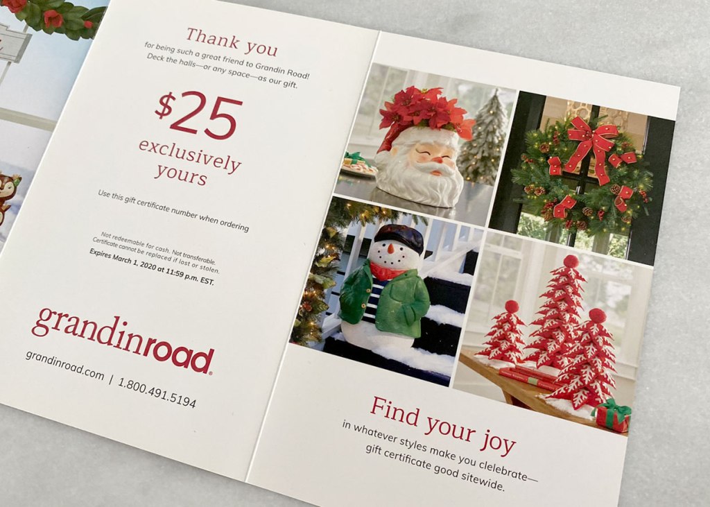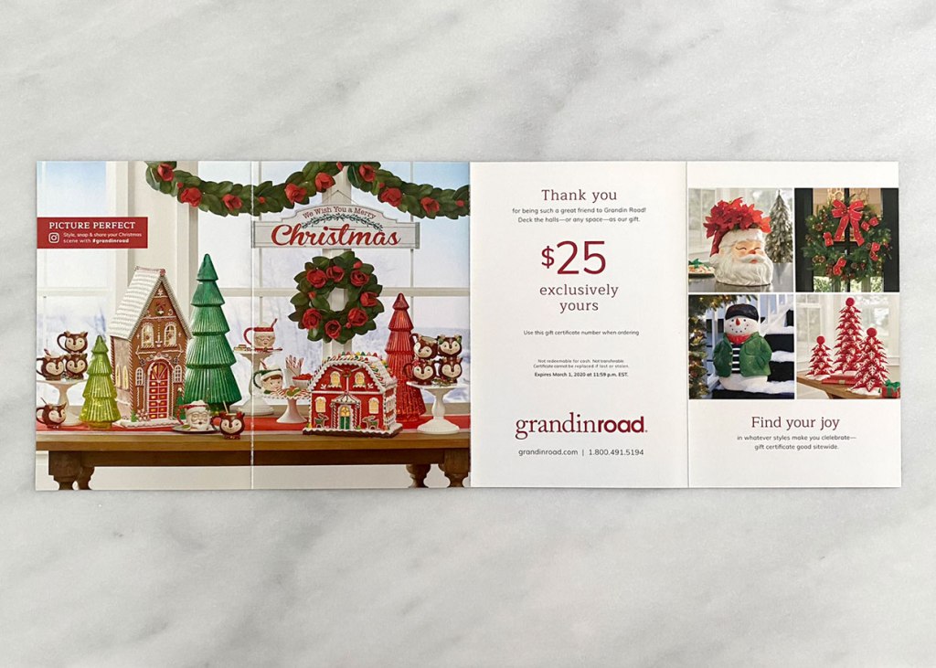 I designed this gatefold mailer during my time at Grandin Road. These mailers were was sent out to best customers to thank them, and give them a discount on their next purchase. Gatefold mailers were always a fun challenge, because you really had to consider how the customer would experience opening them. Before I presented a gatefold mailer, I would always make a mock-up print so that you could really get a feel for how they would look.